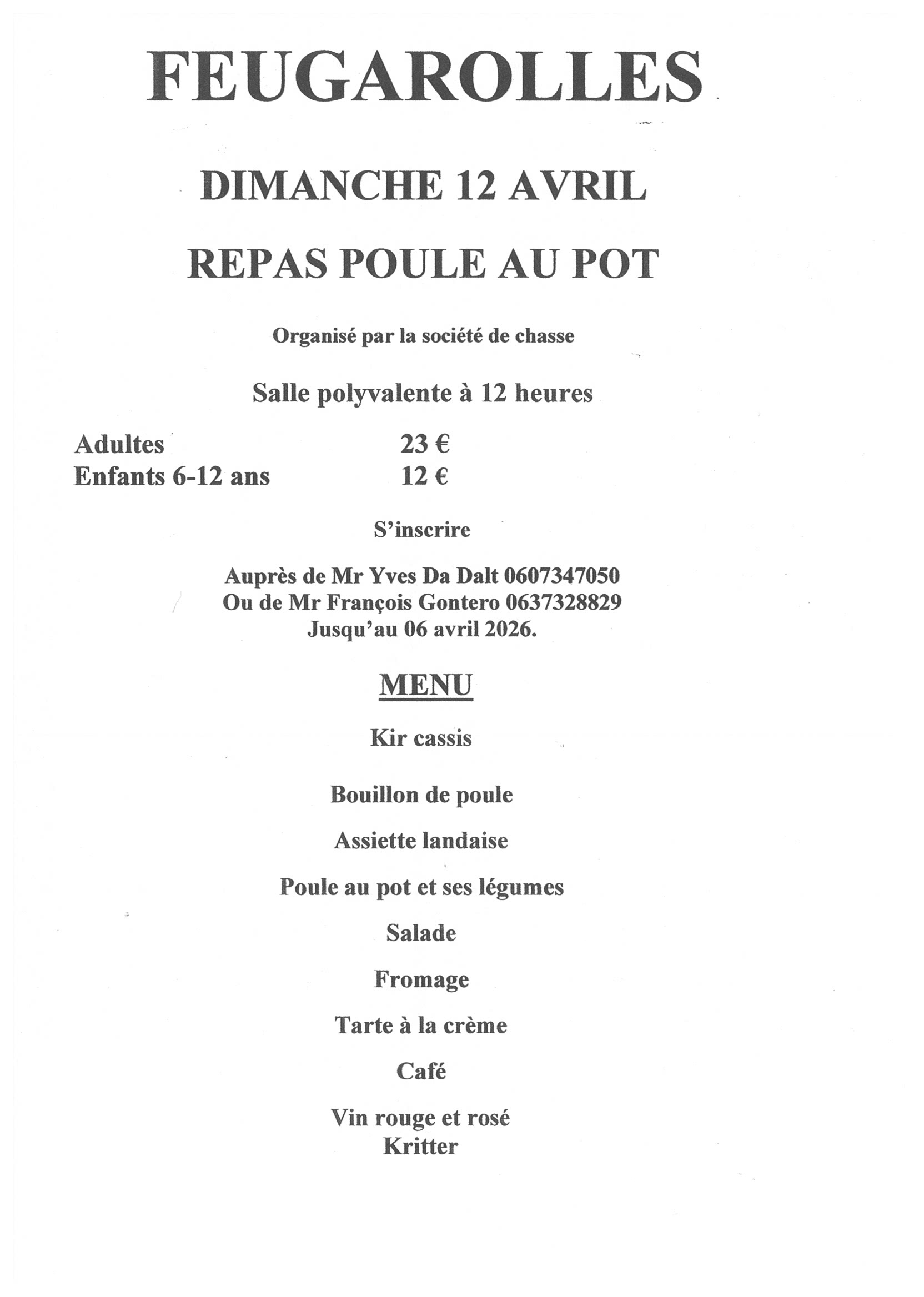 Repas Poule au Pot organisée par la Société de chasse